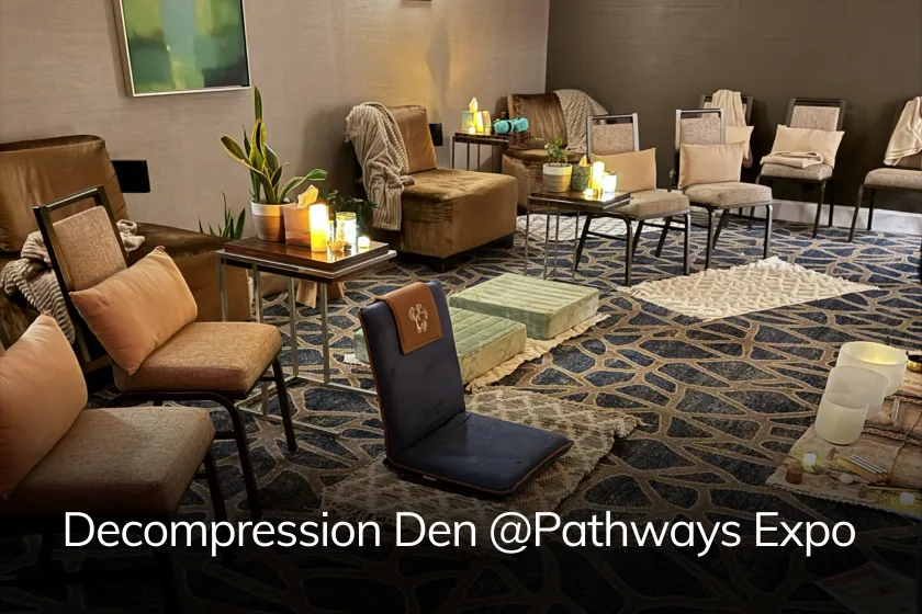 The Stage Ready Lounge gives speakers, panelists, and executives a dedicated space to mentally prepare with support from experienced coaches. The Decompression Den provides attendees with a regulated environment for managing sensory overwhelm, social fatigue, and burnout.